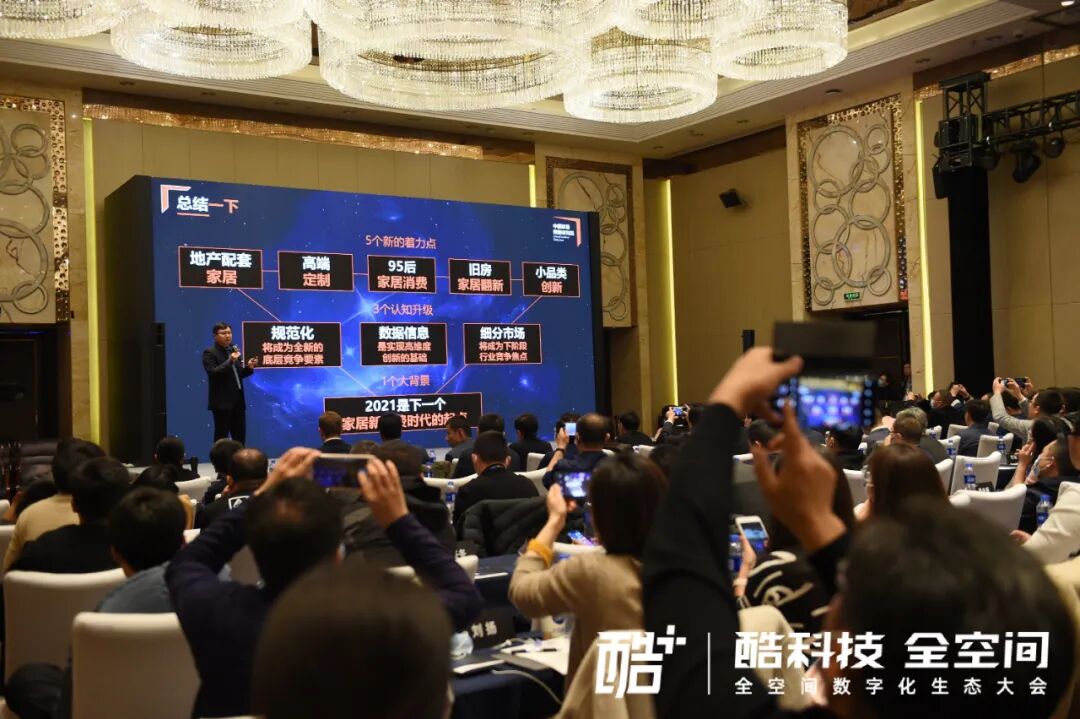 那么在2020年我们有很多的事件,这些事件大概分为三个主类别:一个跟出口相关,一个跟渠道相关,一个跟企业相关。我拎出两个跟大家分享:第一个部分说一下刚刚出炉不太久的煜丰实业,它说明了地产商深入介入家居制造产业,他们的进入其实对整个产业的变革会产生巨大的一个影响。第二它的特点是超大规模,当然了在它之前,大家都知道,现在碧桂园的一个模块,这个模块它的量级以及模式叫供需闭环,它是自给自足的结构,同时他们还要为别的一些地产商进行服务,地产商之间有一些协议。这个模块里面我们看到真实的现象是什么?他们开始来抢夺这个蛋糕。但是他们有他们的先天优势。同时为什么要这么做呢?我跟大概七八个地产商做了深度交流,给我的两个概念是这样的:首先第一个确实要做配套,他们更加在乎重视的是家居的故事,大家知道地产公司都是做上市企业,他们希望把故事变得更加完美完善。倒不是通过这个赚多少钱,但是要让系统变得更加的有张力。另外一个部分,江山欧派,它的地产产值翻番,毫无疑问,它以木门为主体在江山,作为木门产业唯一的上市企业,它有资本的助力以后,然后让它在地产这个模块上面一骑绝尘,重点是建了分工厂,同时7月份开始进入到全屋定制,当然它的全屋定制一部分还是满足于地产商的订单的一个系统。但是无论如何,我们不管它的其它的一些层面,这种企业的增长状态,是让我们每一个在座的企业,可能有羡慕的部分,可能有会引起我们新的思考的部分。刚刚所有现象的背后,希望呈现三个最重要的东西,就是我们的产业结构。在这样的产业结构,下游不管,看底下三个部分,中国家居消费的系统里面,国内消费者占75%的整个市场份额,出口贸易15%,原来2019年之前20%左右,因为19年开始橱柜的反倾销,大概5%的份额拉到越南去了。这边机构组织基本上没有太大的变化。但是在国内消费者里面,我们三个渠道,电商渠道、零售渠道和地产渠道,三者之间的结构变迁。这个结构变迁是非常的迅猛,而且密切的。这里面其实我有一个特别的一个估计,这只是估计:在未来,也许地产这个渠道会拿走我们这个行业接近一半的份额。与地产商如何更好的去合作,这是未来需要去做的重心。第二个是什么?是零售市场的创新僵化。概念创新,我们原来说定制,然后到现在所谓的高端定制,这都是概念创新,概念创新它越来越被消费者识破,这是什么状态?产品创新力匮乏,这个我不知道在座的各位什么感受。我去了好几个比较有规模性的定制,我特别明显的感觉到有一个企业专门设计了年轻人的专利,因为我自己是学家具设计的,我走完看完以后,我实在不知道怎么去评价。因为心里面认为这套产品肯定不会被市场接受和喜欢。当然结果确实是那么一个状态。那么这种产品力的创新力的匮乏,使得我们很多其它的中小企业有新的机会。还有就是缺乏创新的原动力,大企业求稳,小企业缺乏主动的能力,这是我们遇到的一个状况。与地产商的合作并不是那么乐观,有很多东西实际上是我们每一个参与到地产商合作企业的特征。这里举一个简单的例子就好了。如果用一些德式的装备效率非常高,激光封边,一系列所有的东西加工地产相关的产品的时候,实际上你会发现一个问题:第一你的品质过剩,另外一边是成本与需求之间不形成匹配。因为这个故事,在我们的一个朋友那里已经明显的出现,因为之前七八月份订单不足,所以接了一下地产的单,做完一算帐,我的天啊,完全赚不到钱还亏钱。所以从制造到我们的产品的结构和所有的东西,跟地产配套变成一个重心。这里面举个很有意思的例子,其中有一个跟恒大配合的木门厂,让我叹为观止,它总体量一个厂生产将近三个亿的木门,整个工厂只有4款木门。三个亿,4个款,这是它的特点。我们看完2020年所有的归纳,相信大家最关注的是接下来会怎么样?接下来会出现什么样的情况?大家期待的机会在哪里?一个背景、三个认知、五个新的着力点。第一个大的背景,跟大家分享的是2021年是家居新消费时代的起点,大家可能都有共同的一些感受。为什么?在我的分解当中有三个要素:第一市场需求的反弹,当然落后产能被剥除掉,新的需求开始出现的时候。第二新的需求的重心就是95后家居消费,这一块是非常特别的东西,不仅需求的产品不一样,模式也会发生区别。最后是产业创新的新实力,很多的企二代开始接班,有很多新的一个品牌开始着力。那么在这个背景下,我们需要三个理解上的升级:第一部分是规范化,第二部分数据信息,第三是细分市场。第一个全面规范的税收安监环保等经营要素,既是未来的生存基础又是新的衡量标准,同时又是每一个企业家重新需要思考我们经营的成本结构的重心,它变成我们一个新的底层竞争要素,这是我们的第一个部分。这一点不用展开大家都会有一些感触。第二个部分与我们今天的会场息息相关的,我们的数据信息,是实现高维度创新的基础。那么因为它单一的优势,比如说你的产品好,你的成本相对比较低,它其实不足以震撼整个市场。在这个里面要做到的部分是这样的,首先第一个部分信息的数据化,我们要把我们的市场信息、生产信息、服务信息数据化,同时进行数据信息的翻译。这里面提到的算法创新是企业经营的一个整体思维。我们如何能够把这些数据变成最后转化为我